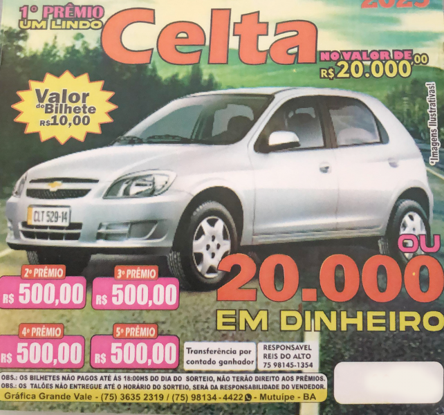 1º PRÊMIO UM CELTA NO VALOR DE R$ 20 MIL