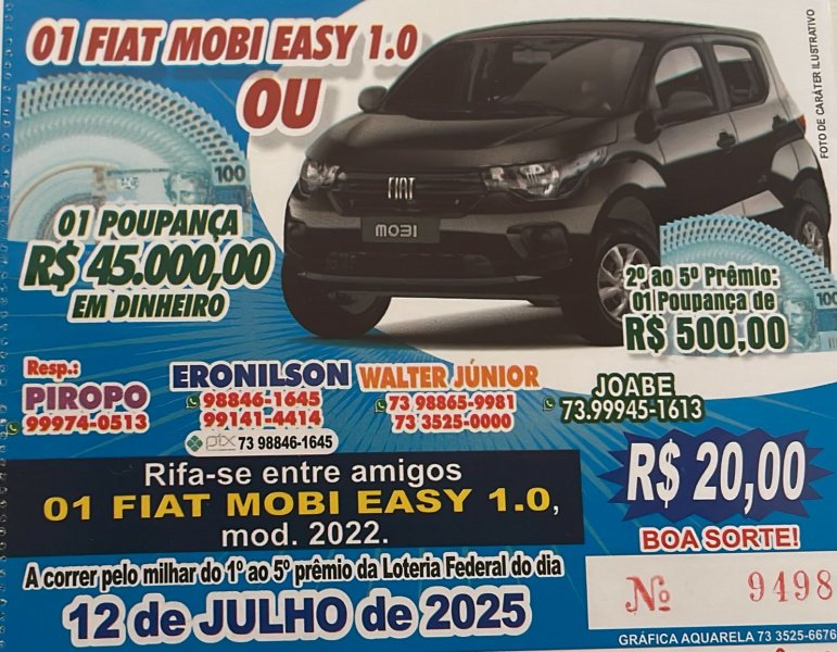 1º PRÊMIO FIAT MOBI EAST 1.0 OU R$ 45 MIL EM DINHEIRO