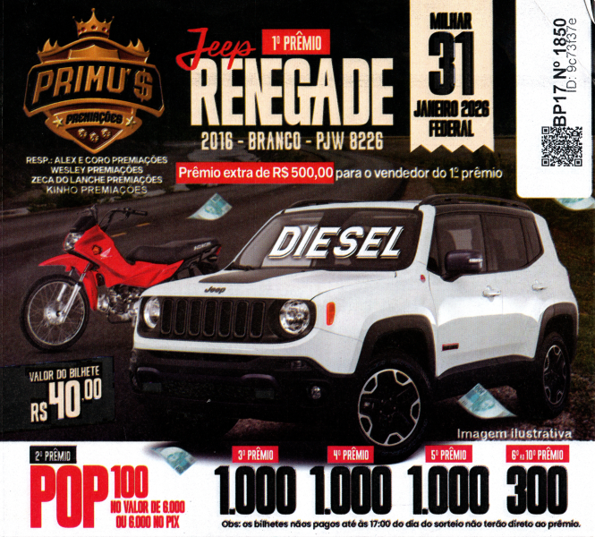 1º PRÊMIO R$ JEEP RENEGADE