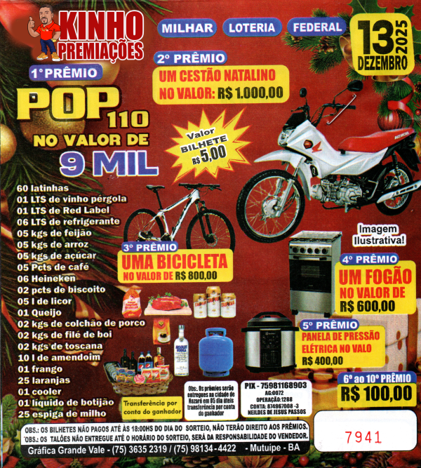 1º PRÊMIO POP 110 NO VALOR DE R$ 9 MIL