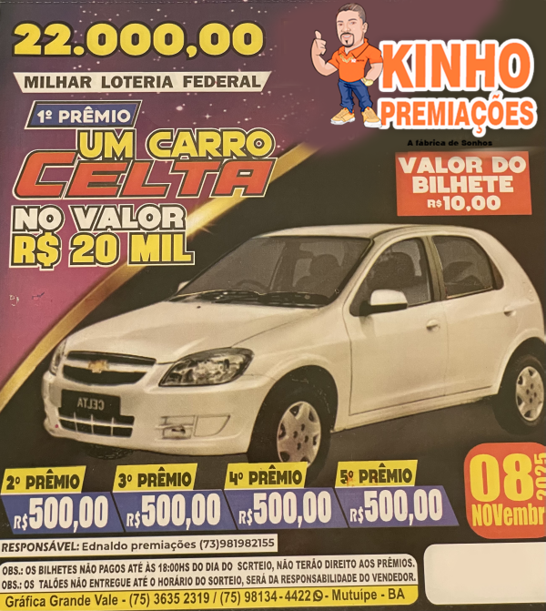 1º PRÊMIO R$ UM CELTA NO VALOR DE R$ 20 MIL